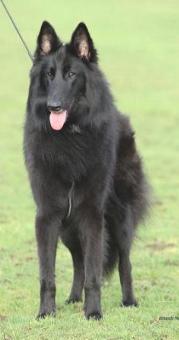 BSDA of GB Ch Show July 2022 ‘6 Years old, good scissor bite, feminine type with good head proportions and good parallels. Dark almond shaped eye, well placed ears, a little large at base, nice neck, square built with good back and sloping croup. Well developed in front and good depth of chest, could be a little more angled in front, well angled in rear. Good bone and feet. Good coat and temperament. In movement covers a lot of ground, moves with good drive, a little loose in front, good tail. Excellent.’ Judge Mdm Vermiere Windsor Ch Show July 2022 ‘Six and a half yrs. Another lovely medium size bitch of good breed type who competed well for first place in this class. Lovely head with dark almond eyes, chiselling around eyes, flat cheeks and good proportions of muzzle to skull. Good size and shape of ears. Good angulation front and rear and moved very well. Just preferred the alertness of first ‘ C Munro E of England Ch Show 2021 5 year old female of excellent type and quality unfortunately out of coat today. Excellent long head with good parallels. Tall ears well set. Excellent brown almond shaped eye and lovely typical expression. Excellent long neck and good height at withers. Excellent square body shape. Good front and rear angulation. Tends to stand with her tail tucked. Lovely light brisk movement. Judge : Cath Bond E of England Ch Show July 2107 Beautiful head and expression, small ears well set and used, nice dark eye with good shape and obliquely set. Lovely body shape with good topline and underline and croup. correct bone moved and showed well. Res Bitch CC” Judge : Lorna England 3 Counties Ch Show June 2017 “15 month female typical junior stage very square in body, good length of neck, very good bone but still feminine, good length of head with flat skull, good volume of muzzle, parallels good , enough chiselling, nice dark eye, well shaped giving a lovely expression, ears set high, moved very well around the ring, just needs to mature .” Judge : Babs Robinson. Boston Ch Show Jan 2017 “Tosca De L'Ambassadeur Des Belges. Pretty baby, most beautifully feminine, long head with good parallel head planes, darkest of eyes, ears well set and used well, tight lips, beautifully chiselled head, lovely body shape with good croup, well set tail, most delightful character, so full of confidence, just needs to fill out and im sure will be one to watch for the future BB &BPB.” Judge : Lyn Church E Kent Feb 2017 “Smart looking bitch with finely chiselled head, dark eye and correct dentition. Good spring of rib and very graceful on the move. Best Puppy.” Judge : D Dence Kent CS Nov 2016 “Very nice young Groenendael of quality, lovely square outline, head already showing much chiselling, high set, well placed ears, lovely eye shape, firm neck and well placed shoulders, tight elbows, strong rear, showing a wealth of coat, attentive and alert, moved and showed well, Best Puppy, such a shame she was unable to stay for the group.” Judge : Lyn Church. Driffield Ch Show Sept 2016 “What a little cracker, loved her size, shape, balance all correct for age, very pretty head & expression, on the move was surprisingly positive for such a baby with already good drive, nice reach & brisk profile stride. BP. “ Judge : C Chapman