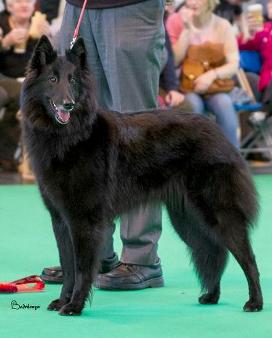 Northern Belgian Shepherd Dog Club May 2012 : 1st Yearling B “Brown eyes, good almond shape, lovely expression medium head with good chiselling. Well split mouth. Ears well used and set. Very like her sister in previous class of which much applies, though not as mature. In good condition. Again good side gait and same excellent temperament. Both very promising” Judge : Karen Angier