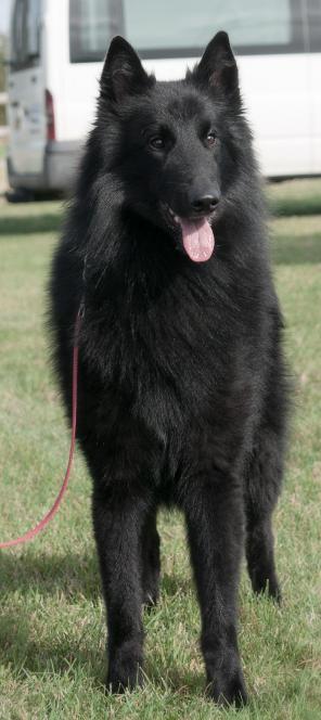 ‘14 months old. A tad weary but soon settled in weather conditions on the day wet and really windy. Medium size and with good overall bone for size and age. Lovely dark almond eye with good pigment. Skull and muzzle developing well and with desired taper with good dentition and well fitting flews . Alert ear usage, ample reach of neck onto well fitting shoulders and elbows. Height to length ratios balanced croup and tail set. Moved well with positive actions. Jacket with medium harsh quality. Res Best Dog.’